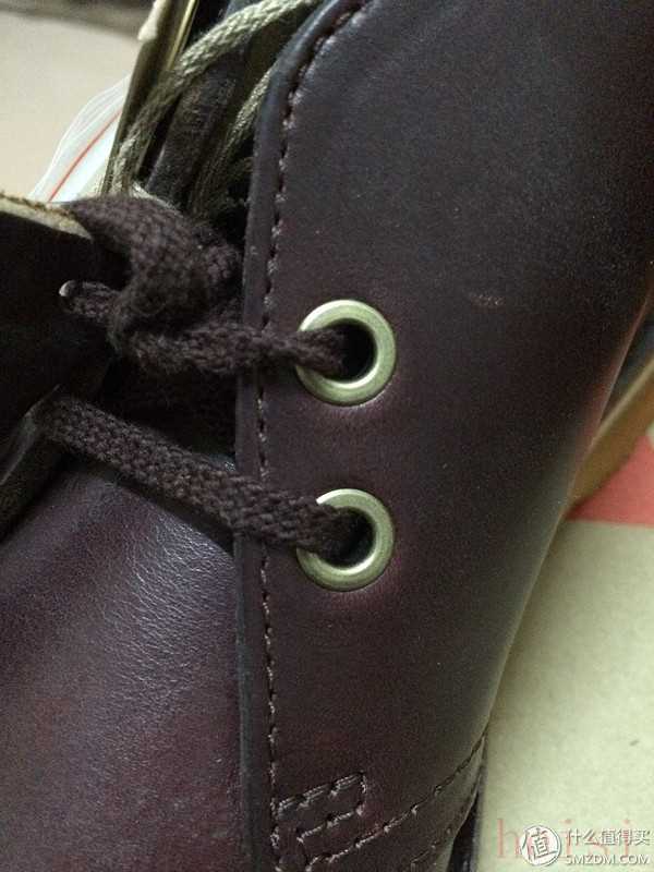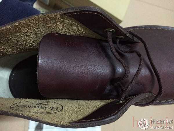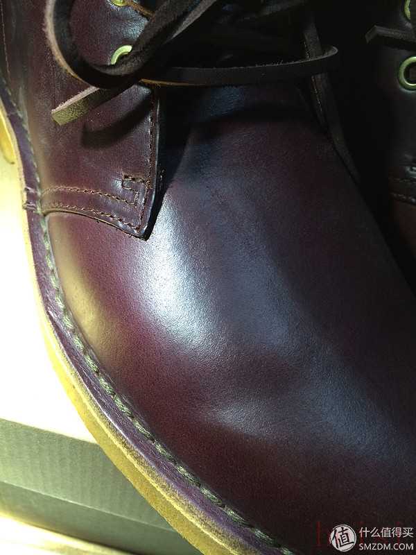 从细节上可以看出整体做工都比一般的经典沙漠鞋要好,皮子摸起来很柔软、舒服,不会像蜜蜡色的那么硬。上面还上了层白色的蜡。(这照片色彩我自己都看不下去了,还我诱人的酒红色)