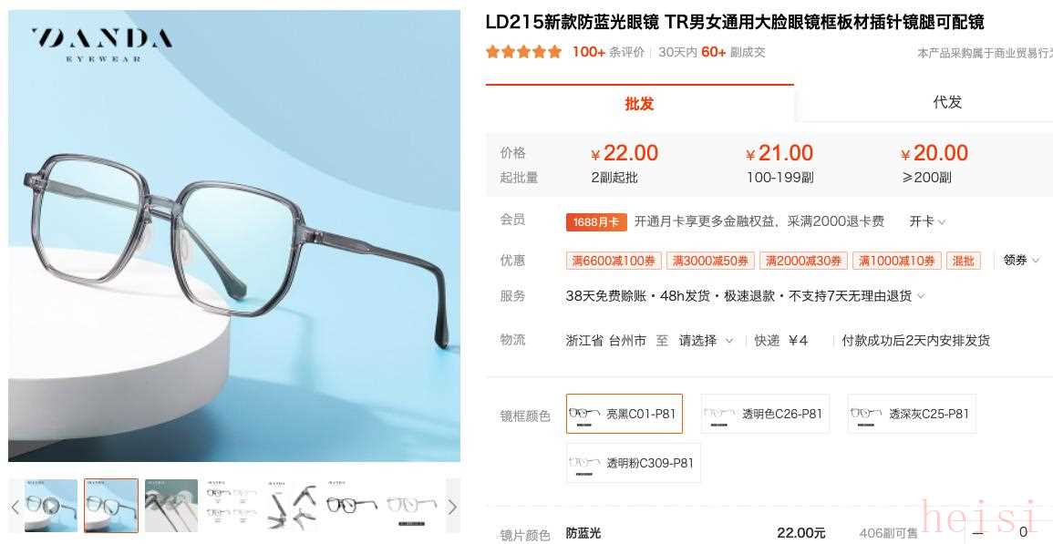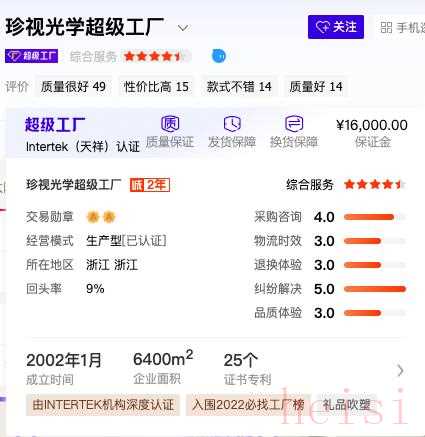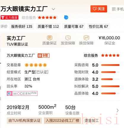 大家注意, 可以找客服沟通!!!之前推的很多店铺的默认起订量是2副,要1副的客户拍2副让客服改价格就行了。 如果有店铺不这么做生意, 直接忽略即可。以下推荐公司虽然都是实力工厂认证都提供蔡司镜片, 可能仅是一个线下店面, 并不是之前推荐的超级工厂那样的大型店铺, 大家在选购的时候还是多多甄别, 这里仅作选择的参考。