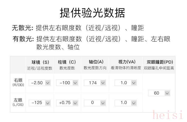 线上购买眼镜,尤其是镜片,强烈建议"先到线下验光店进行专业验光",获取准确的度数(球镜、柱镜、散光轴位、瞳距PD、瞳高PD等数据)。线上店铺通常会提供验光服务或建议您自行验光,但自行验光误差较大,影响佩戴舒适度和视力健康。