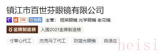 镇江百世芬眼镜有限公司, 这家公司位于丹阳市也是国内一个主要的眼镜框架生产产区。这家工厂主要生产眼镜框架, 也提供眼镜配件, 或者镜片的配置, 建议大家到医院验光, 然后到这边直接定制眼镜, 价格会便宜到令人发指。