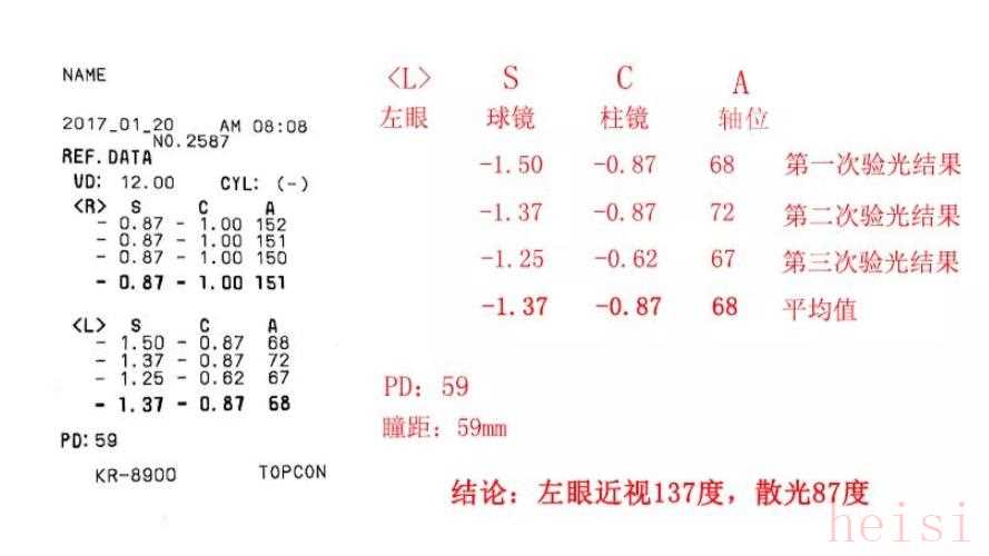 目前大部分都是是电脑验光了, 验光结果更加准确。 验光主要是测试近视/ 远视度数, 散光度数, 散光度数方向, 双眼瞳距等一些关键数据。