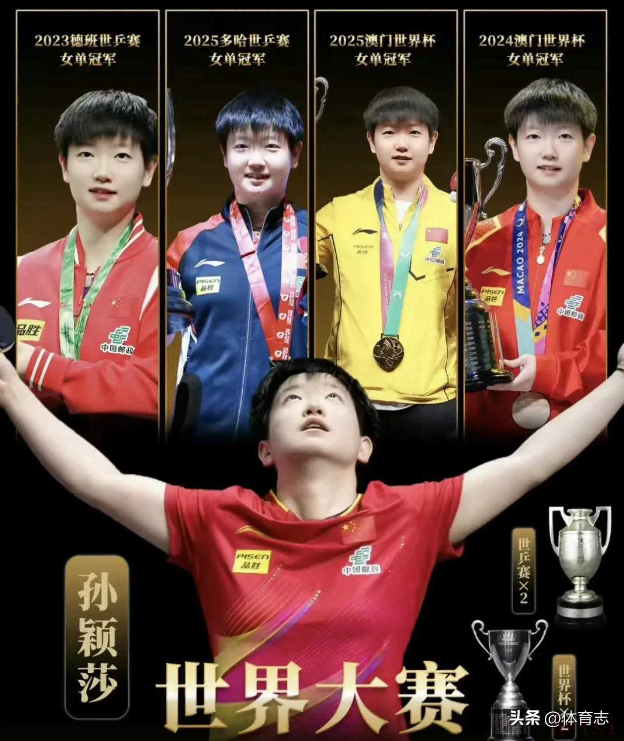 先说说孙颖莎,这名字如今几乎没人听过。2022年7月,她女单全球第一的位置基本不变,到2025年4月,积分马上上升至1.1万 ,这是世界乒联积分改革后的新纪录。她今年才24岁,变成队里的领袖。巴黎奥运会混双金牌,女单亚军,2023年世乒赛女单冠军,还卫冕了2025年世界杯女单。顺便说一下,她也获得了新加坡全满贯和新乡冠军赛。几乎每一场国内外比赛都很稳定。网友们取笑她“恶魔”,但私底下,她看起来像个“小豆包”。更别提经济来源了,孙颖莎现在有27个代言人,包含美容、车辆及技术。欧莱雅48钟头卖4800万元,半亩花田1钟头卖3000万元,露洁3分钟卖光。红旗签她缘故也有点有趣,“国手配国车”。有着3亿IP估值,她的热度和带货能力,同行们都羡慕不已,即便同龄人看了也大呼“太顶”。