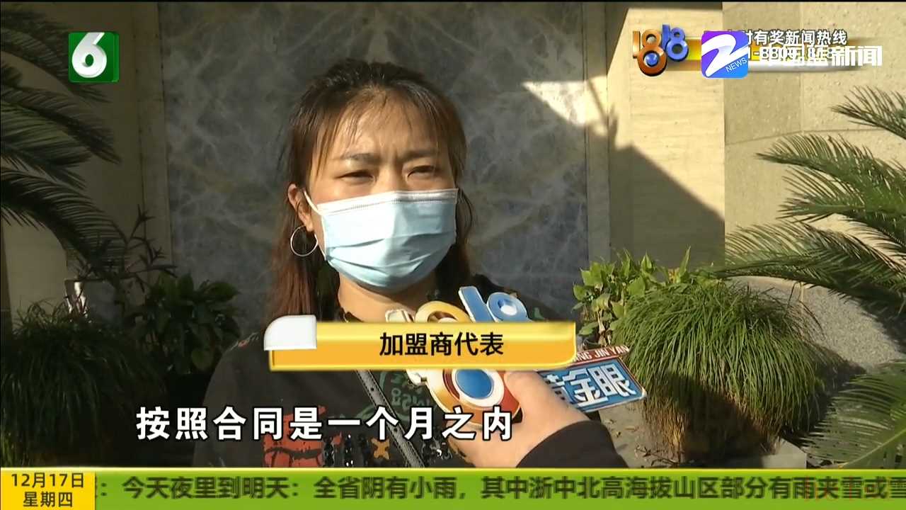 加盟商代表:加盟了之后,我们撤店的话,按照合同是一个月之内退给我们退押金是吧?搞到最后他们就是各种拖。直到现在我是五月份撤店的吗?五月份到六月份撤店的,现在已经是十二月份了,他们一直没给我们退完押金,我们是前天到杭州的,然后我们去公司里面一看,什么都没有了,已经人去楼空。
