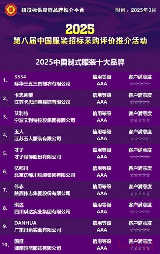 关于“2025中国制式服装十大品牌发布”这个话题,需要说明几点: