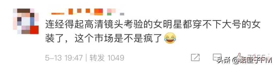 网友连呼“连经得起高清镜头考验的女明星都穿不下大号女装了这个市场是不是疯了”“到底是谁一直在制造身材焦虑”
