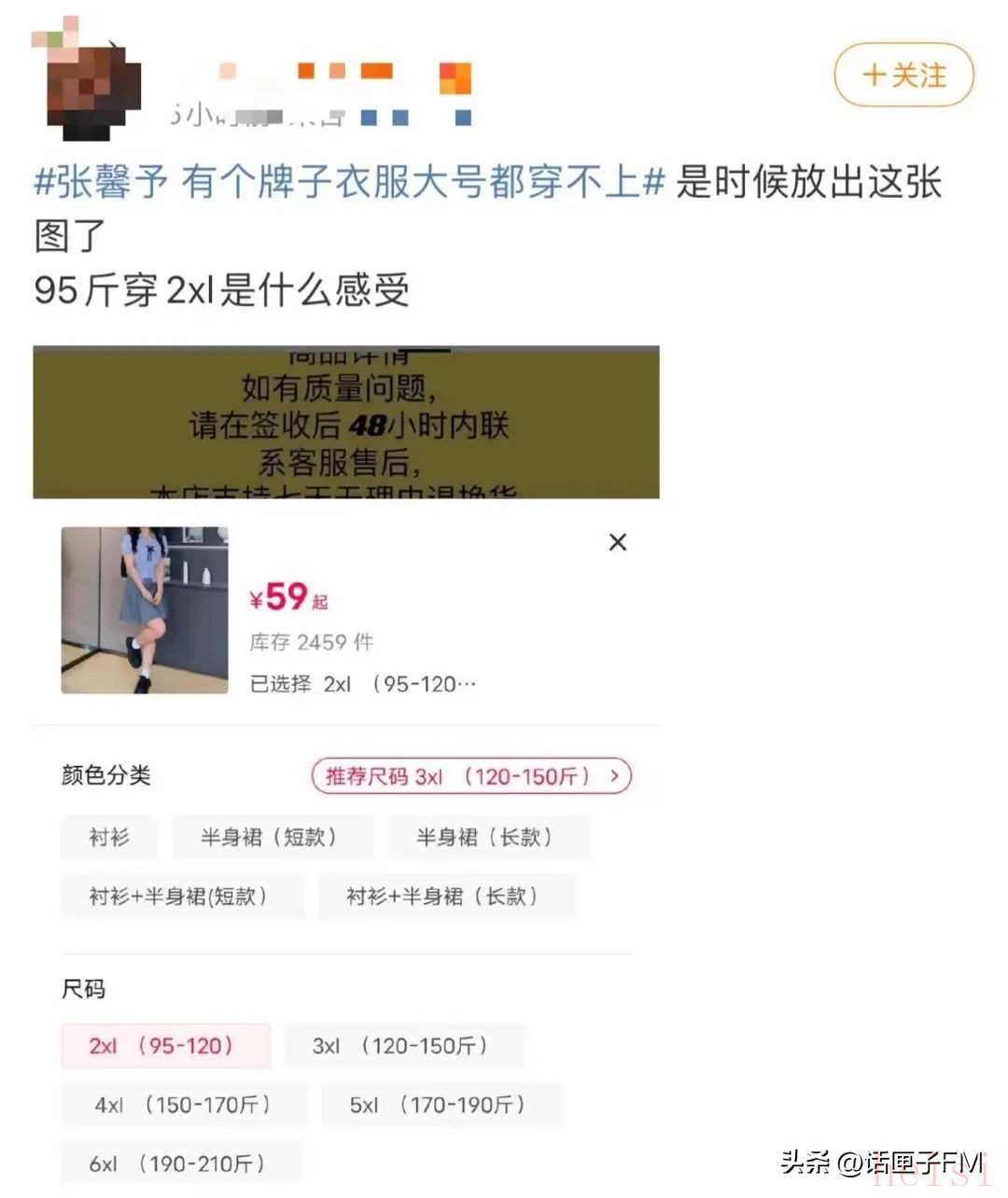 张馨予表示:“有个牌子的衣服我很喜欢可我连他家大号都穿不上”