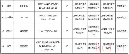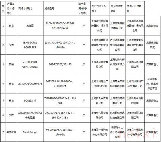 2018年上海市皮革服装产品质量监督抽查不合格产品