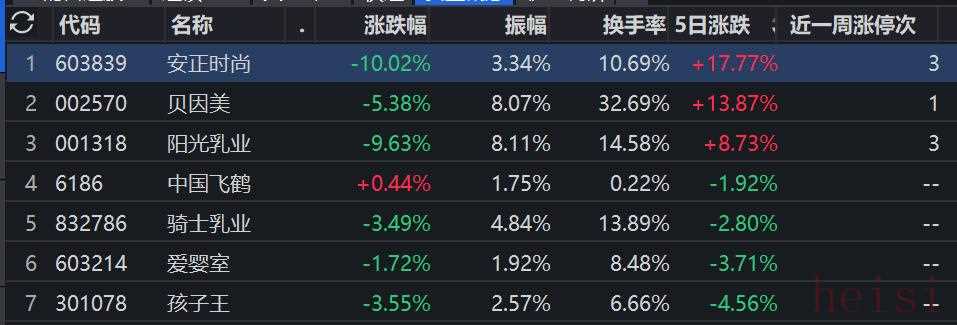 然而,这场资本盛宴“来得快去得更快”。8月1日,母婴概念股集体出现大幅震荡;至8月4日,板块更是全线回调,其中阳光乳业单日重挫9.6%,贝因美下跌超5%,而安正时尚的波动更为剧烈,当日直接封死跌停板。