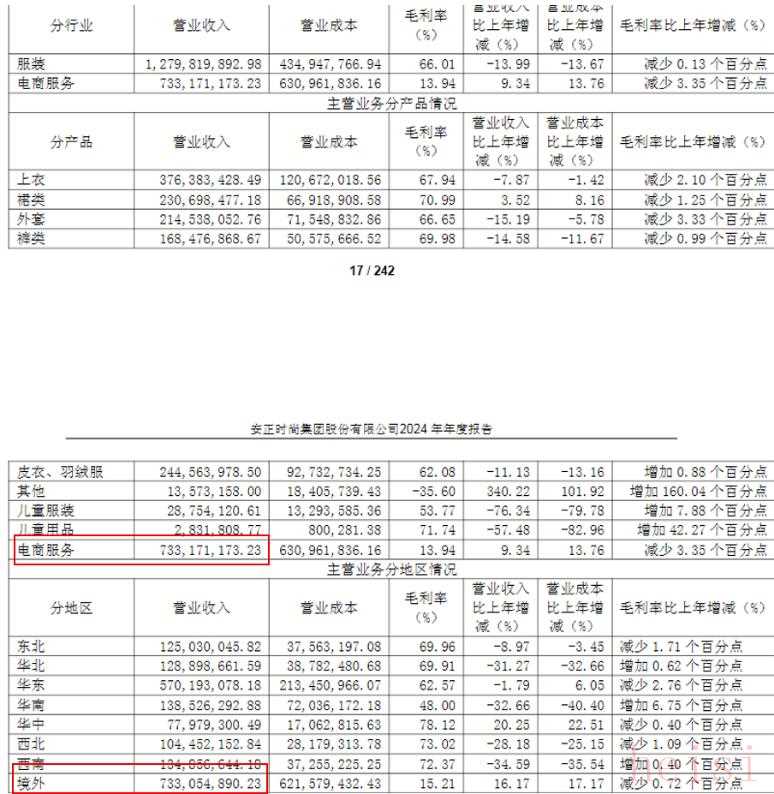 但深入剖析年报数据后,这个"母婴概念"就显得比较牵强。2024年年报显示,所谓的"母婴用品"收入,实际上是控股子公司礼尚信息(安正时尚持股93.05%)的电商代运营业务。