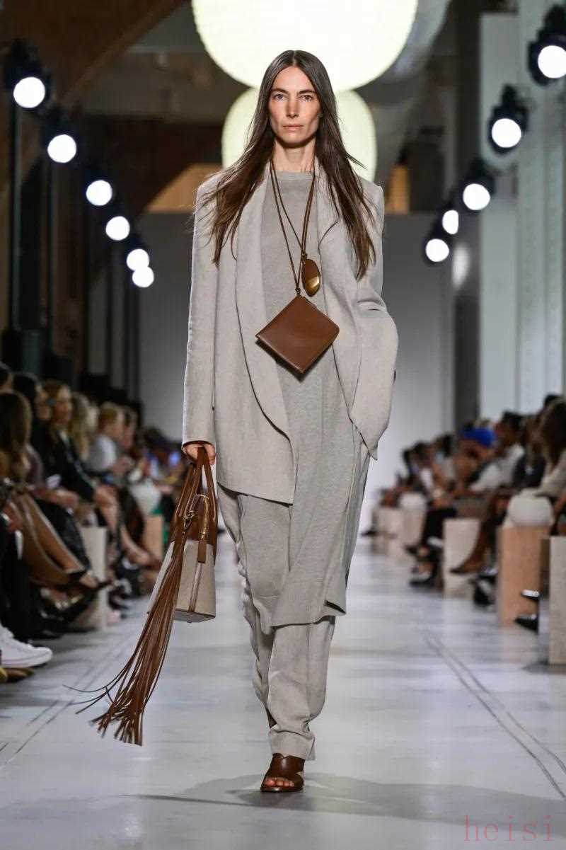 配饰方面,本季同样强调手工与质感。柔软的超大皮革手拿包、富有设计感的打结市集包,以及由意大利工匠手工打造的皮革首饰,都展现了独特的工艺魅力。简约的凉鞋与穆勒鞋,平底与高跟款式并存,于行走间自然流露出优雅的气质。