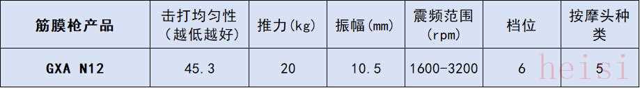GXA-N12 提供 6 档震动频率,并随机配备 5 款多功能按摩头,可灵活应对全身放松或局部肌肉紧绷问题。整体推力20kg,适合日常肌肉放松以及轻中度运动后的恢复使用,为肌肉提供稳定而舒适的放松体验。
