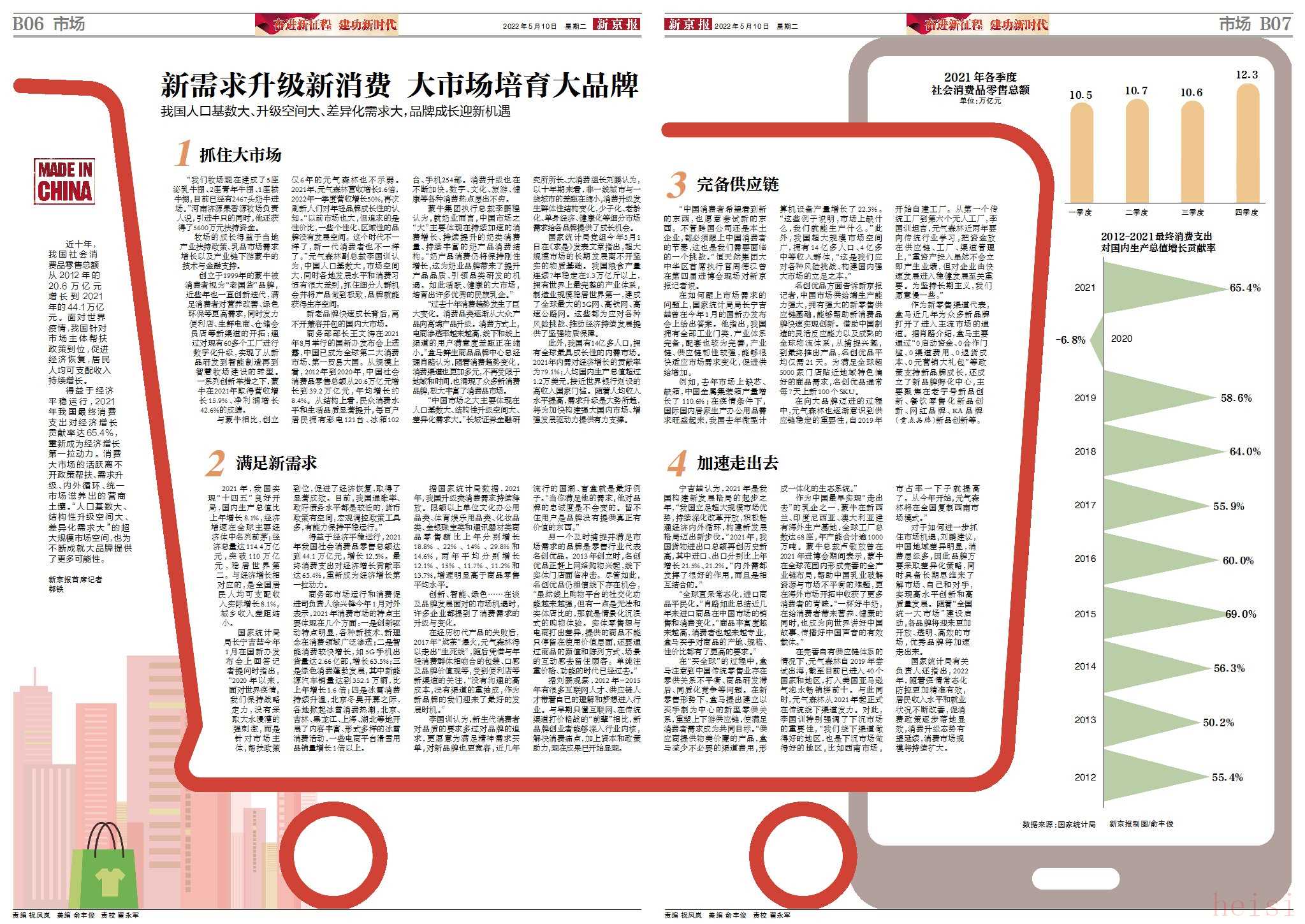 得益于经济平稳运行,2021年我国最终消费支出对经济增长贡献率达65.4%,重新成为经济增长第一拉动力。消费大市场的活跃离不开政策帮扶、需求升级、内外循环、统一市场滋养出的营商土壤。“人口基数大、结构性升级空间大、差异化需求大”的超大规模市场空间,也为不断成就大品牌提供了更多可能性。