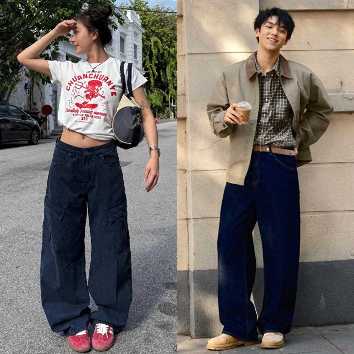 若是上衣版型太修身,则对身高、身材的要求就高;如果上衣版型太宽松,搭配弯刀裤就容易碾压身材比例,穿出一种“牛头不对马嘴”的违和感。