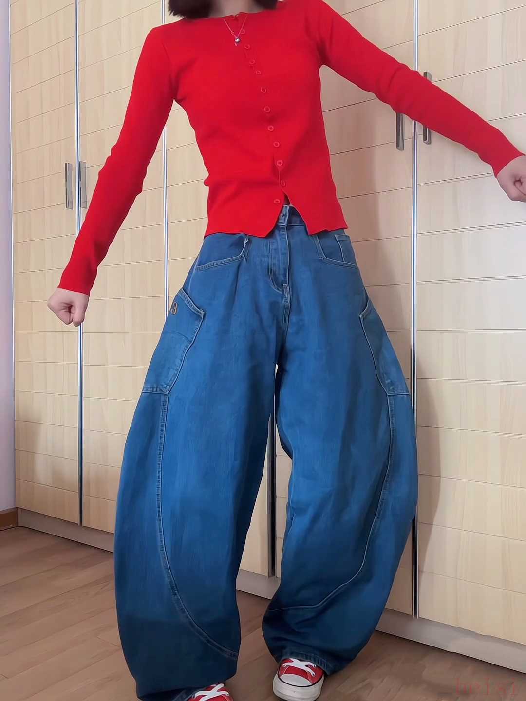 弯刀裤之所以能在中国和日本同时爆火,还得益于其裤型对腿型的包容性。粗腿、O型腿、梨型身材,穿上弯刀裤刚好可以掩饰这些身材问题,并且还能营造出收胯、显腰细的视觉效果。