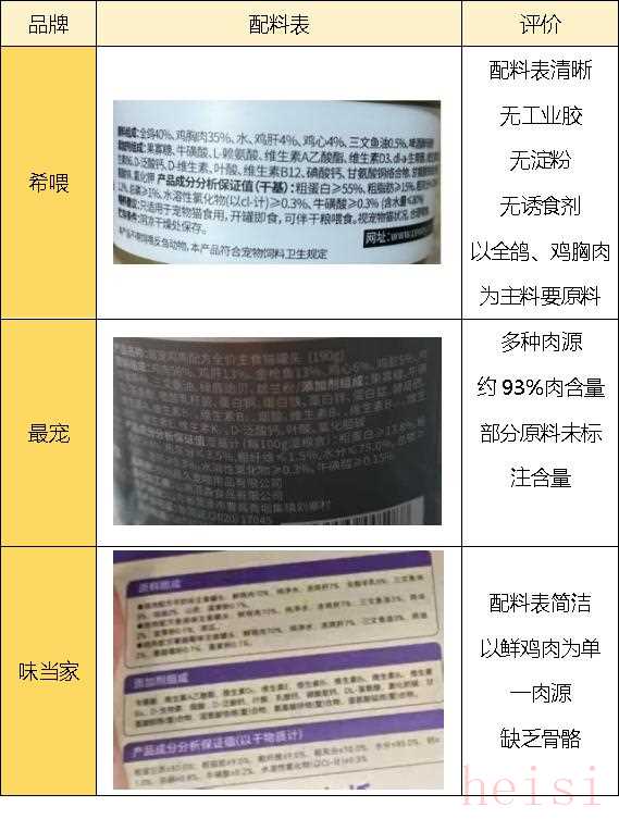 味当家猫罐头总肉含量约77%-80%,未明确标注鲜鸡肉是哪个部位,公开了原料供应链,但没有添加骨骼,需要靠营养添加剂补充钙磷。