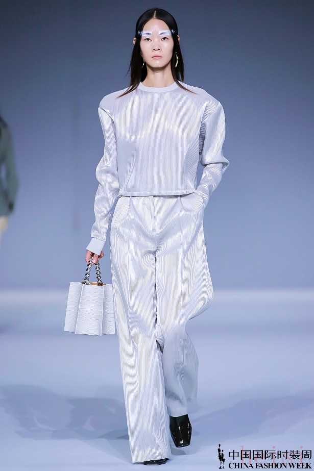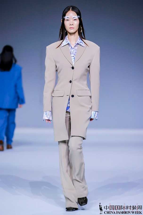 2021春夏系列由超模刘冰冰、王新宇等人领衔演绎,唤醒大家对上个世纪武侠年代的视觉回忆。此外,2020龙腾精英超级模特大赛的冠亚季军以及2020IMC上海国际模特大赛的冠军等新面孔都有出色的发挥,秀场上鱼贯而出的宽大肩部线条下收紧腰线的total look,各种融合当代基因的复古印花的衬衣和oversized西装套装层次利落地搭配,放大了武侠年代的特征,设计师韩磊再次运用了创新材质堆叠和混搭造型,意在营造出两个时代的经典特质。