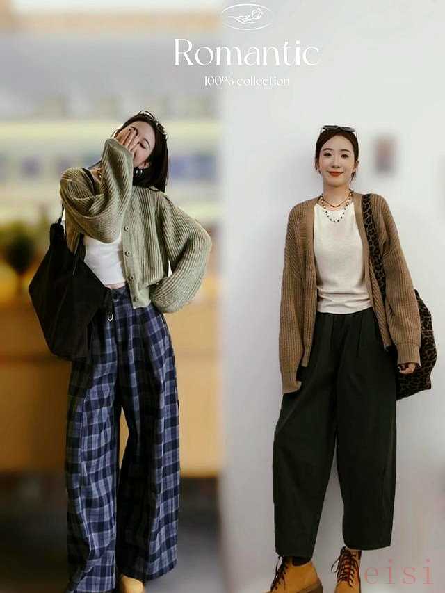2. "搭配阔腿裤更显腿长 (Paired with Wide-Leg Pants to Highlight Long Legs):"