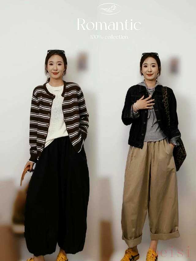 "阔腿裤 (Wide-Leg Pants):" 阔腿裤是近年来非常流行的单品,其宽大的裤腿设计本身就具有显高显瘦的效果,特别能拉长腿部线条。
