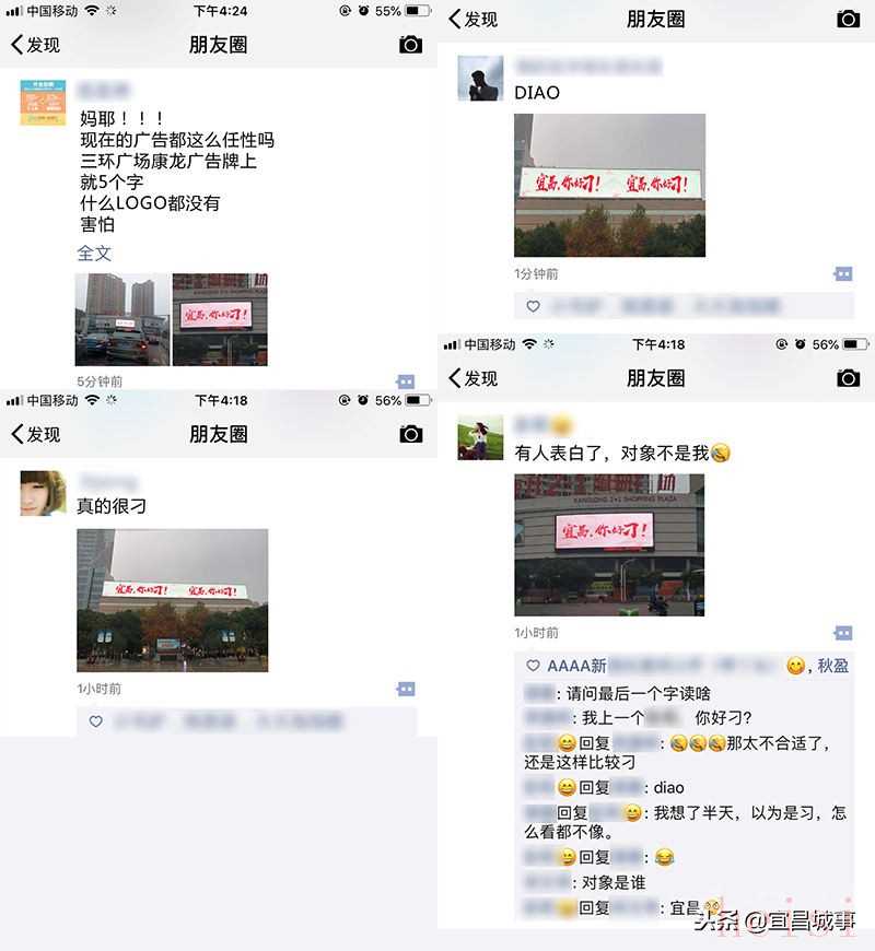 宜昌的几处知名户外广告牌(如国贸等地),近期出现了引人注目的“表白”内容。