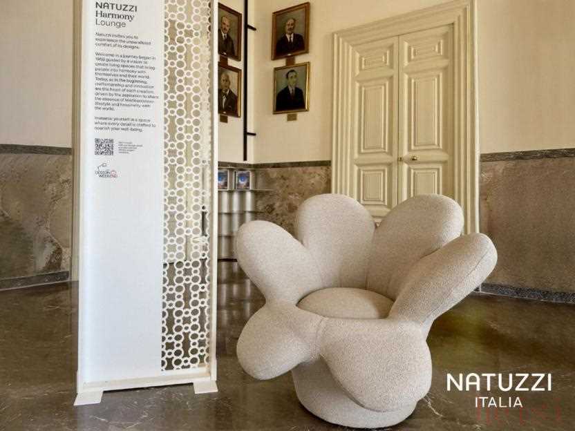 创立66年来,Natuzzi Italia始终以“和谐”为核心理念,融合设计、自然与人文。今年,Natuzzi集团持续深化在全球艺术与设计领域的布局,积极参与具有国际影响力的高端展会与文化交流项目。先后亮相西班牙马德里Marbella Design&Art Fair艺术盛会,与知名建筑事务所GC Studio合作打造“Raices Del Sur”项目空间;在纽约携手美国室内设计师协会(ASID),成功举办聚焦设计未来与创新的独家论坛;并于意大利Ostuni设计周期间,在历史建筑Palazzo San Francesco的主厅Sala dei Sindaci中,通过多款标志性产品陈列,演绎纯正意式雅致氛围,向全球观众传递Natuzzi的设计理念与美学追求。