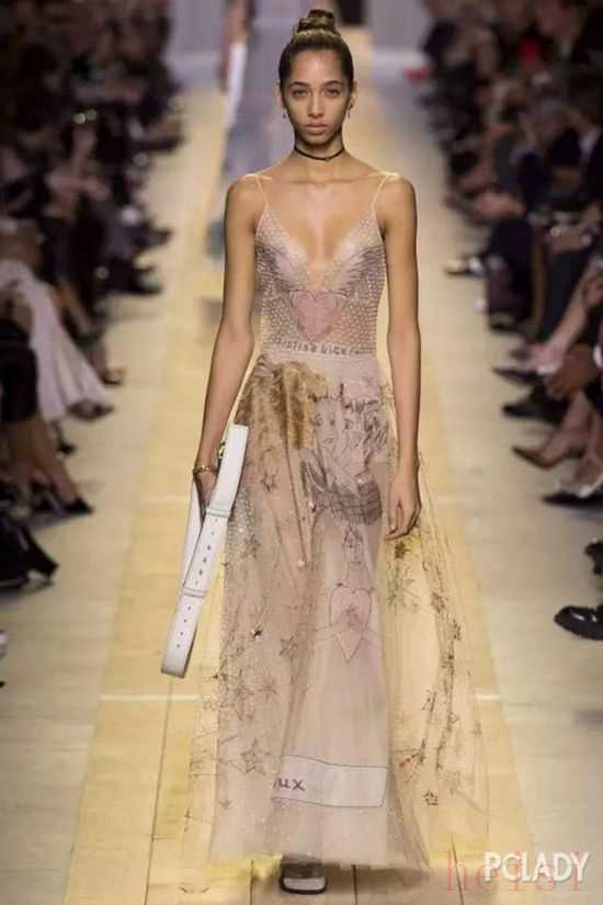 Valentino 2017春夏成衣秀场上的这件裙子,多层次的裙身上手工缝制着2,000颗细小的珠子,即便有将近20人来一起制作它,这条裙子还是耗费了2,000个小时才完工。