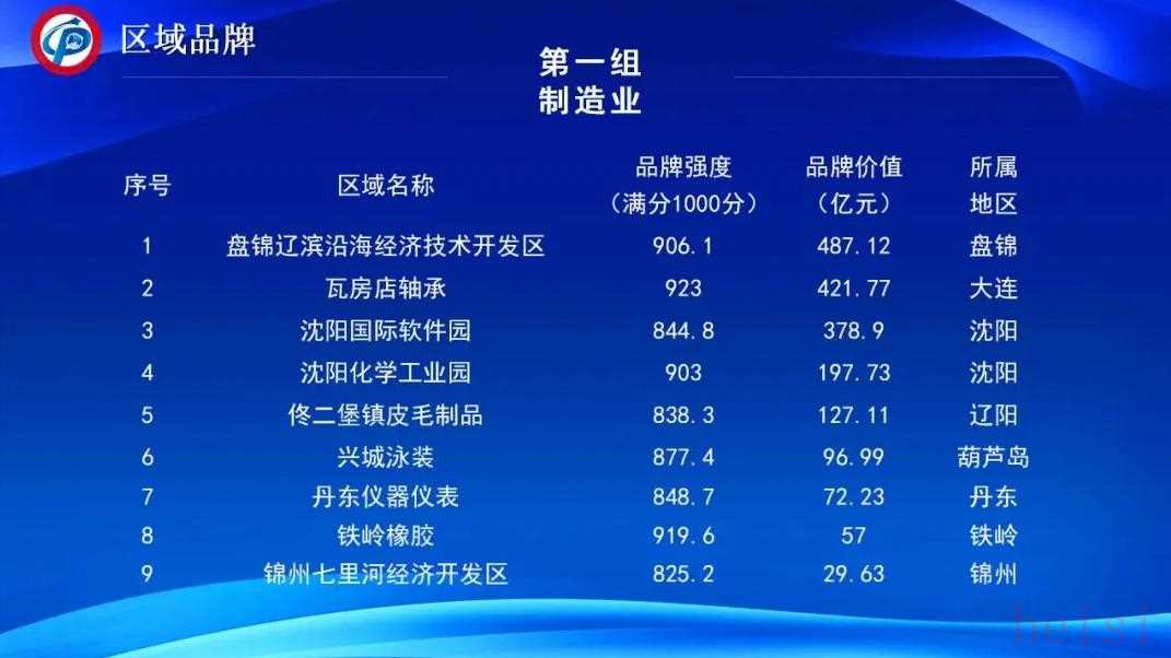 其中盘锦辽滨沿海经济技术开发区最高,品牌价值为487.12亿元。瓦房店轴承,品牌价值421.77亿元。