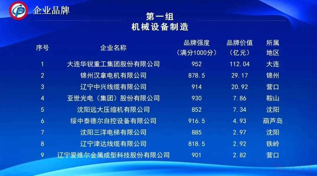 其中大连华锐重工集团股份有限公司最高,品牌价值为112.04亿元。