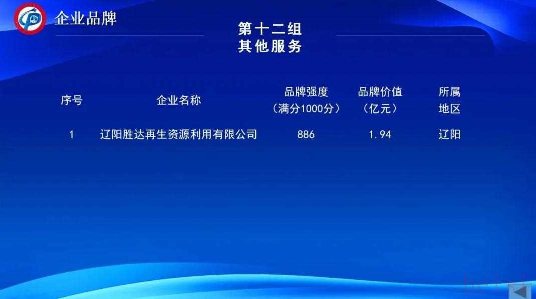 其中辽阳胜达再生资源利用有限公司最高,品牌价值为1.94亿元。