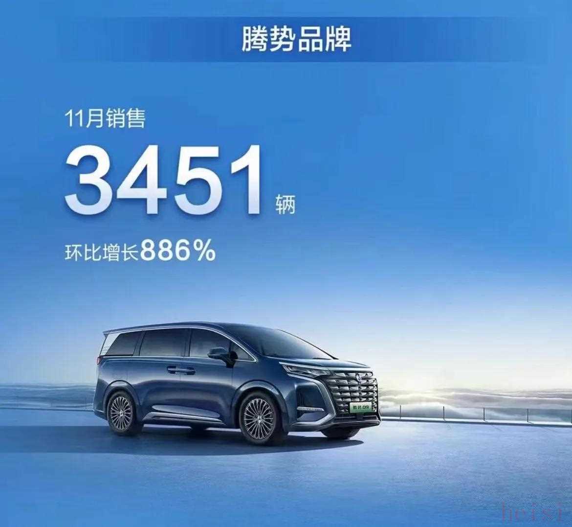 经历重组后的腾势品牌,上市了其第一款焕新后的产品——起售价33万的腾势D9,在11月份取得了3451辆的销售成绩。