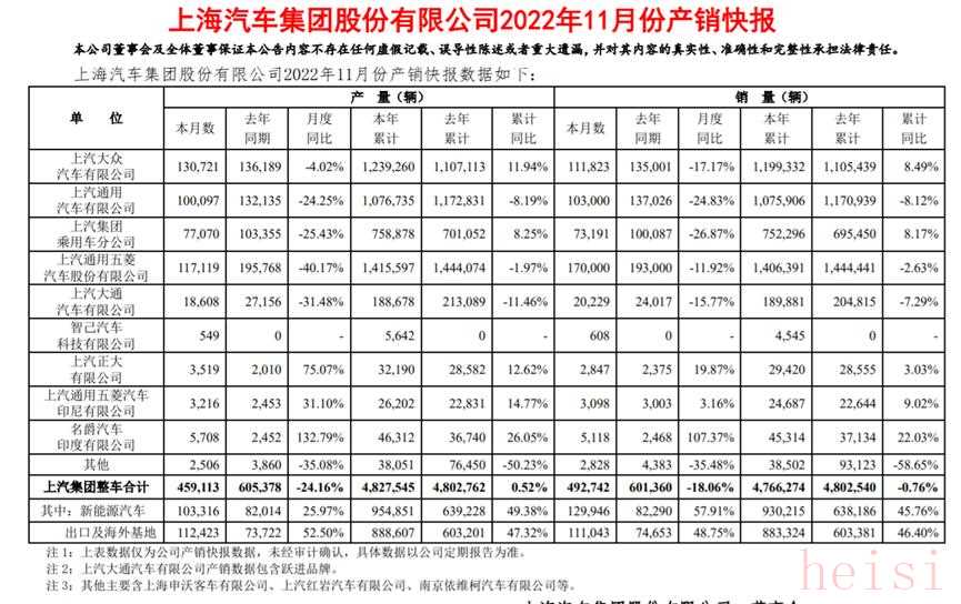 在新能源车销量方面,今年前11个月,上汽乘用车销售新能源车21.1万辆,同比增长43.3%,呈现出不错的增长趋势。
