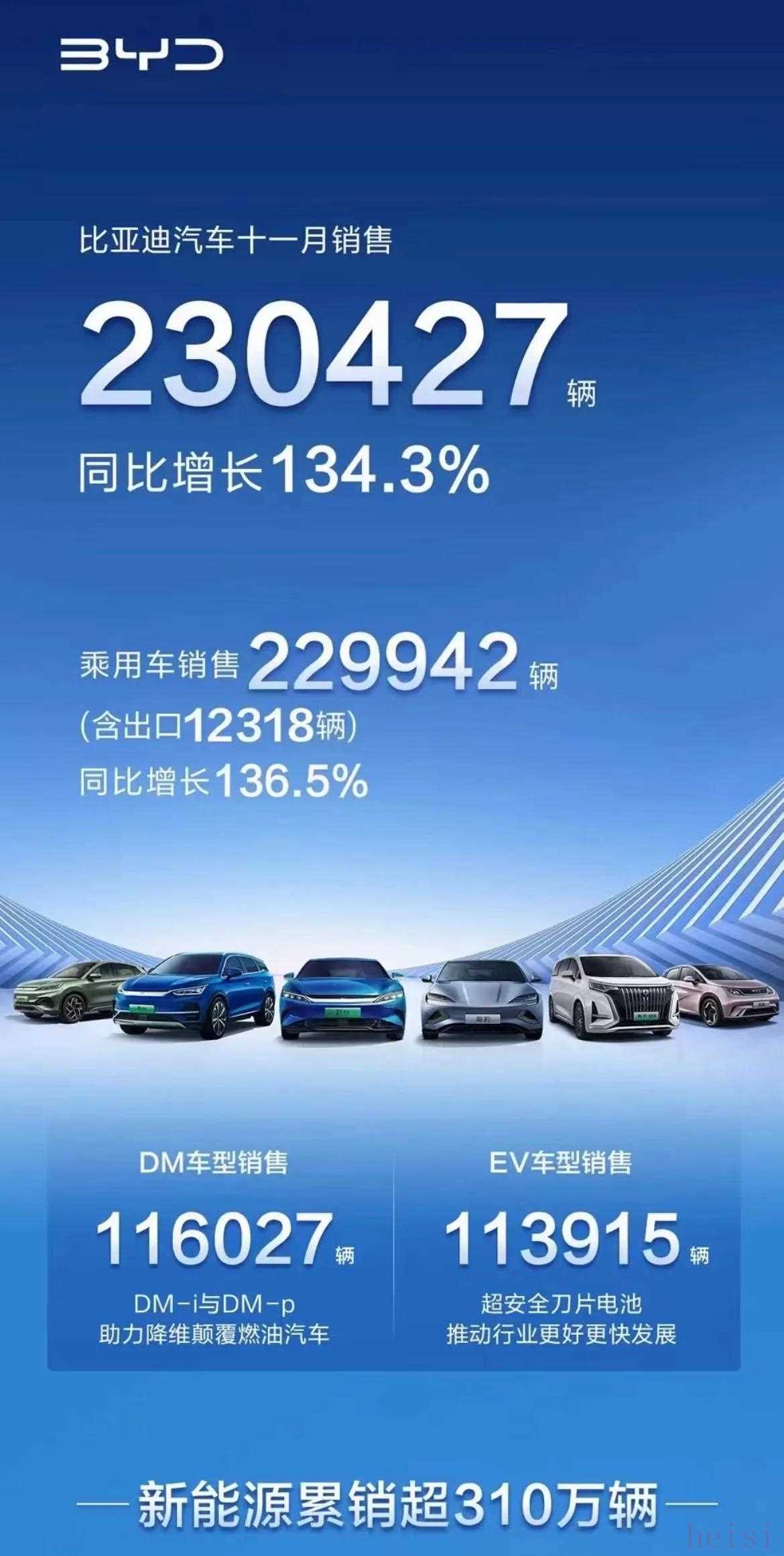 1. "比亚迪的领先地位:" 毫无疑问,比亚迪在2023年持续保持着强大的市场攻势。凭借其纯电和插电混动(DM-i/DM-p)车型的热销,以及不断扩张的产品矩阵和销售网络,比亚迪在11月及全年