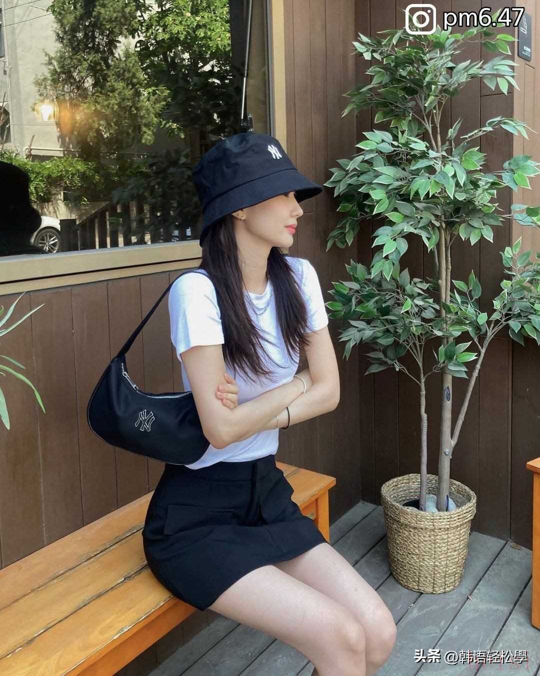 今年夏天以MLB的单色流浪汉包完成夏季搭配的两位名人,MZ代表名人金宝拉和李侑菲