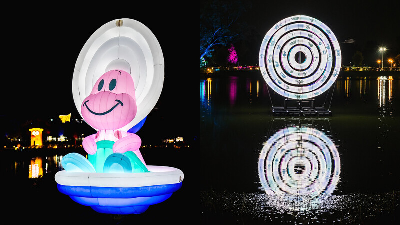 今年活动最大特色,便是展区内共展出8大光影装置!由华裔设计师Daniel Wong担任策展人,序幕有30米长光环隧道+4.2米巨型怀錶,欢迎跟着兔子脚印穿越时空;宛如走进仙境般魔法庭园;有5只牡蛎宝宝随着灯光与音乐舞动;会看到帽子先生、重现故事场景。