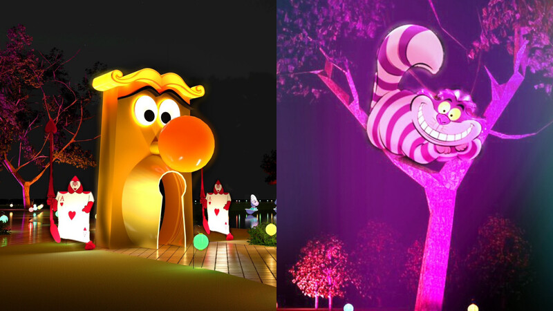 带出中秋节意象的,会看到4.5公尺高的5环装置,宛如满月倒映水中!活动最大看头:会有9米高巨型爱丽丝现身,旁边还有60朵巨型红玫瑰点缀,打造梦境中的女主角!能找到超人气明星妙妙猫;最后一站则为这趟冒险画下温柔句点。