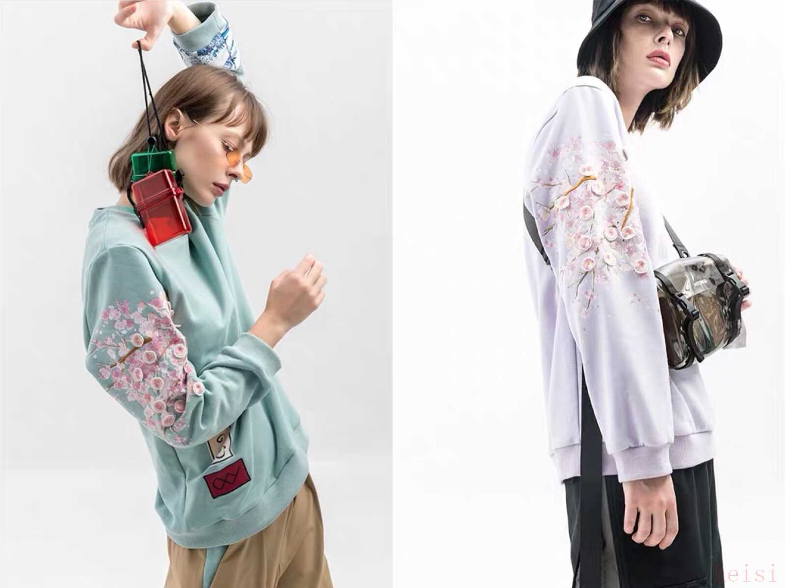 除新品外,OXY studio的浮世绘系列也一直受到年轻人的喜爱。这件卫衣就让人想起了葛饰北斋的《神奈川海浪》,衣袖处的樱花图案还是立体绣花,非常精致。