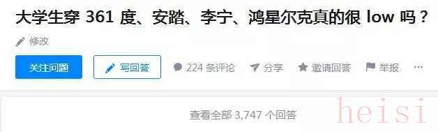晋江鞋企们在赞助、广告、品牌打造上攻城略地,但品牌形象仍然算不上多么高大。知乎上“大学生穿361度、安踏、李宁、鸿星尔克真的很low吗”这样的问题有3000多个,年初也有“穿特步相亲被拒”这样的新闻出现。