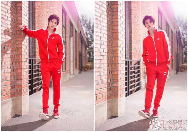 Suede Classic+新年款休闲鞋采用大红色麂皮鞋面,两侧为复古配色的跑道带,简单的白色平底,红色的编织扁鞋带,呈现出了上世纪60、70年代的街头风貌。跑道带上侧和鞋跟处的金色PUMA Logo,则透露了Suede的经典地位。PUMA还同时推出了红色T7复古夹克,在当红小生鹿晗的演绎下,这套复古服饰显得更加阳光、青春、经典。