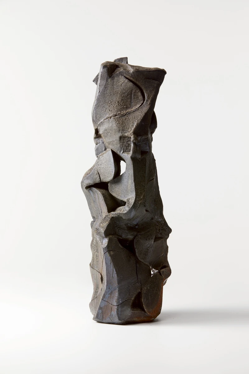 道川省三以陶土、火焰与落灰为素材,于器型尚未乾固之际,进行摔打、旋转、割裂与解构。在强烈高温与高能动力作用下,作品表面遗留剧烈的转动与裂解痕迹,衍生出丰富的质地与偶发的型态,往往更像自然现象的产物。道川视自然为合作伙伴,目的是引出材质的,感受从自然汲取的力量。