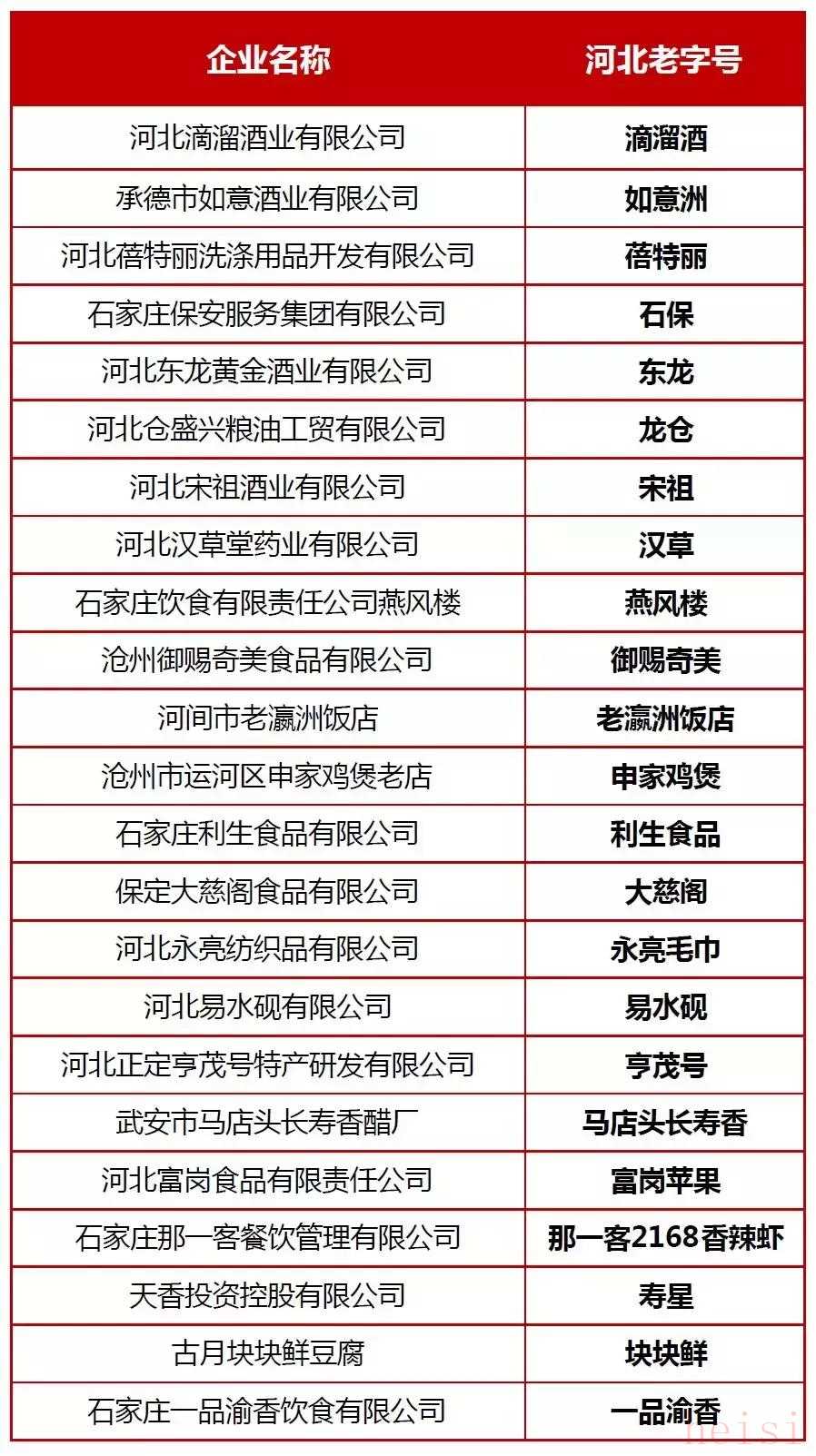 这是根据河北省商务厅发布的《河北省“老字号”名录(2023年)》整理出的最新河北老字号名单,共计46家。