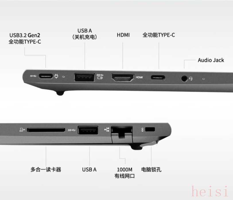 更贴心的是,设计团队深谙商务场合的连接需求,提供了“大满贯”式的接口配置。机身两侧集成了HDMI、USB-A、USB-C、多合一读卡器和3.5mm耳机孔,甚至还有商用场合中相当常用的RJ45千兆网口。机身左侧的USB-A接口支持关机充电,所有的USB-C接口均为全功能接口。堪称完备的接口类型,使得用户无论是在会议室连接投影仪,还是在外接存储设备和键鼠,都无需依赖繁琐的转接器,极大地提升了工作效率和便利性。