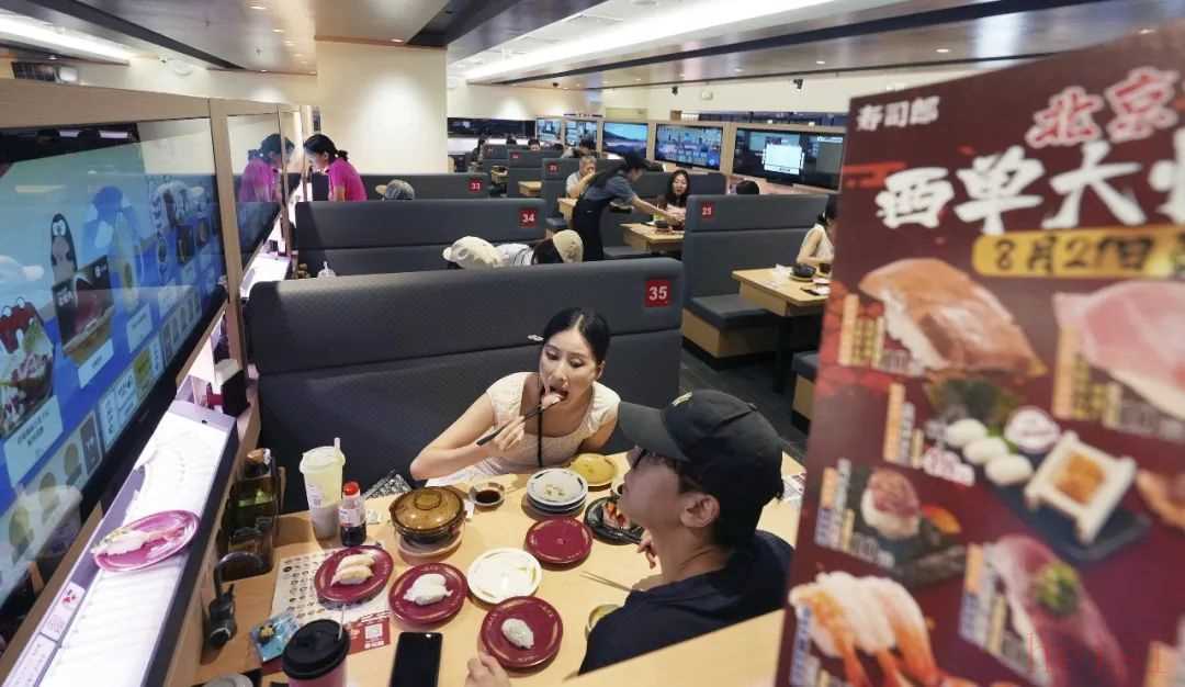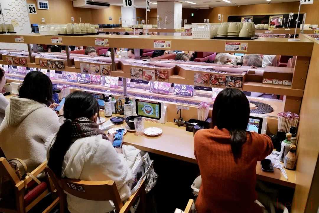 两碟肯定吃不饱。接下来的一个小时里,梁妍和朋友只能不断地重复站起—坐下—站起—坐下的动作,因为小车每次只能送两三碟。她环顾四周,倒也不是所有人都需要边吃饭边运动,但这家位于北京国贸商城五楼的寿司店,位置相当有限,一人位有8个,多人桌只有6张,其中一半都得站起来取餐。
