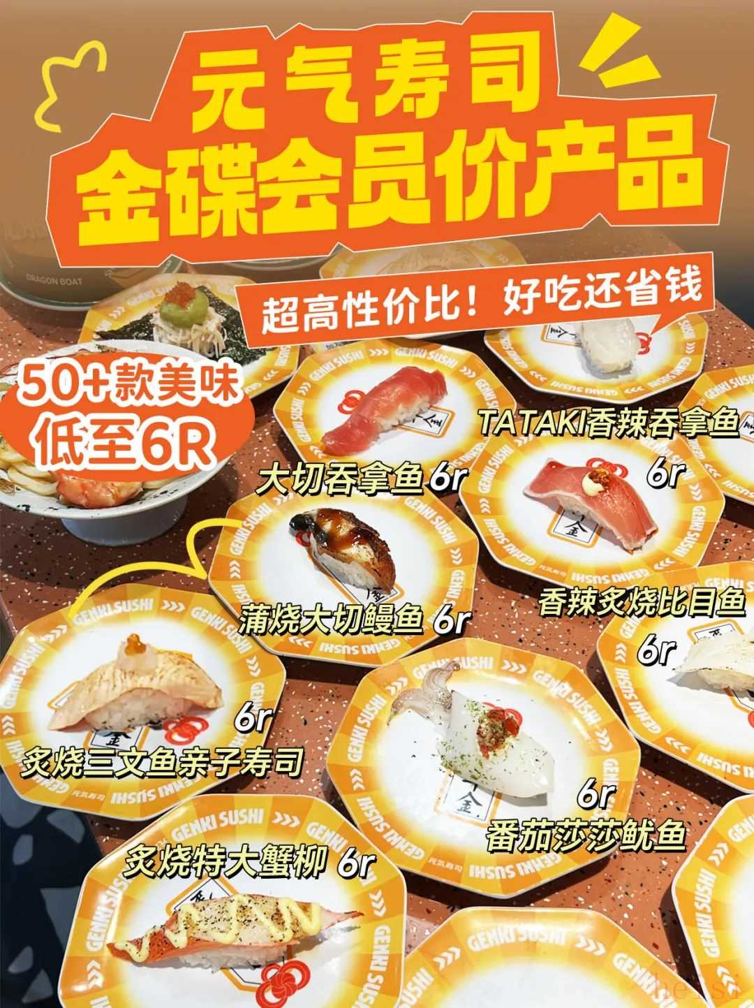 1. "产品定价:10元一盘" - 这是非常具有冲击力的价格点。在通常认知中,寿司属于中高档或日料范畴,10元一盘的价格远低于普通寿司店的平均水平,更接近快餐或小吃的价格。