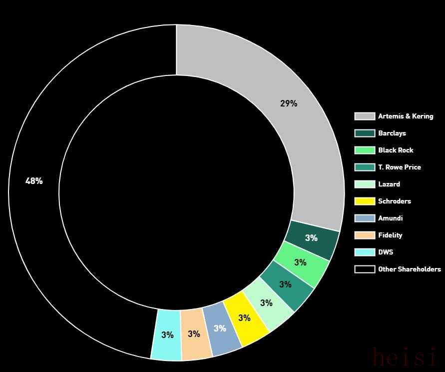 根据彪马最新股权结构,除Artémis(皮诺家族的控股公司)以29%的股份独占鳌头外,其余机构投资者如巴克莱、黑石、T. Rowe Price、富达等均持3%的股份。