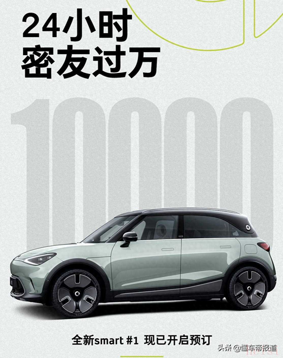 日前,smart品牌宣布,全新smart精灵#1在开启预售24小时后,订单量已经破万。