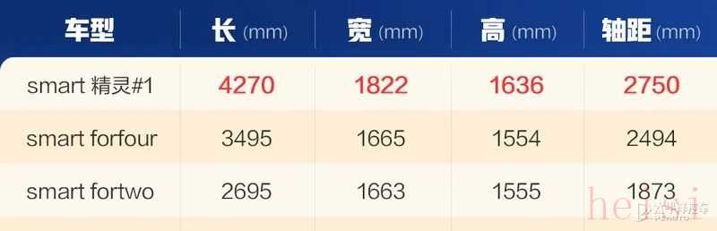 如今的smart精灵#1可以堪称史上最大的smart车,虽然从图片上看依然小巧玲珑,但其实它的三维尺寸已经全方位超越当年四座的smart forfour,其宽度甚至可以比肩奔驰C级(1820mm)!当然,身材的膨胀也会给车厢带来益处,新车的驾乘空间也并非老款smart fofour能够比拟。
