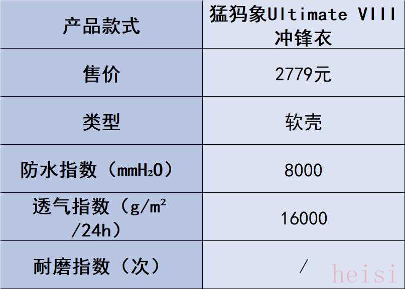 品牌7:猛犸象Ultimate VIII 冲锋衣