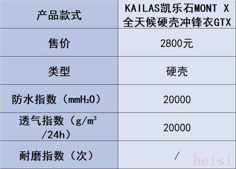 品牌10:KAILAS凯乐石MONT X全天候硬壳冲锋衣