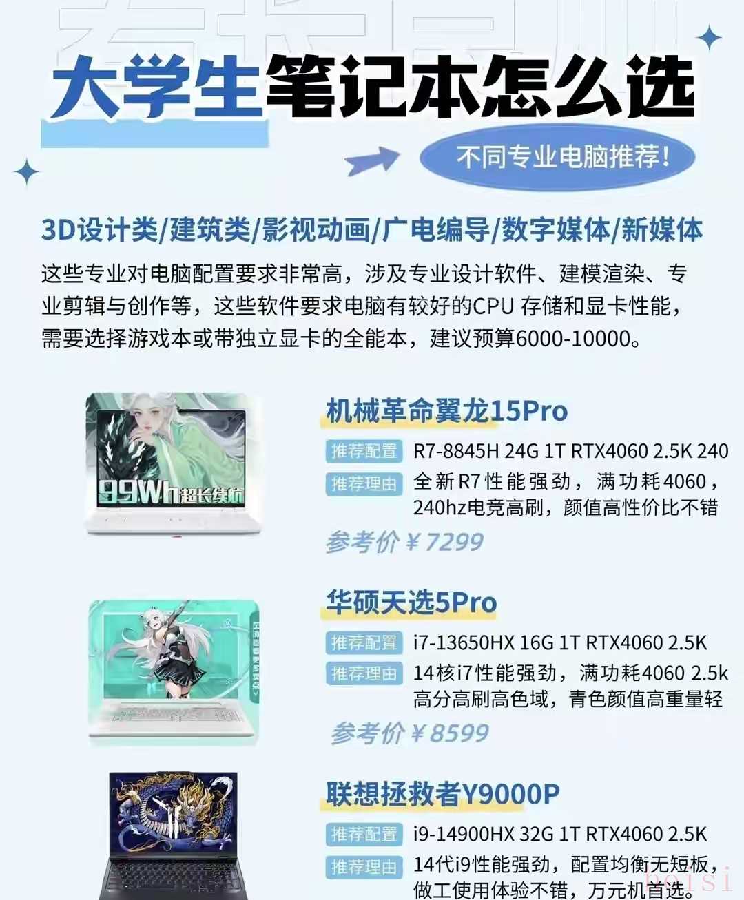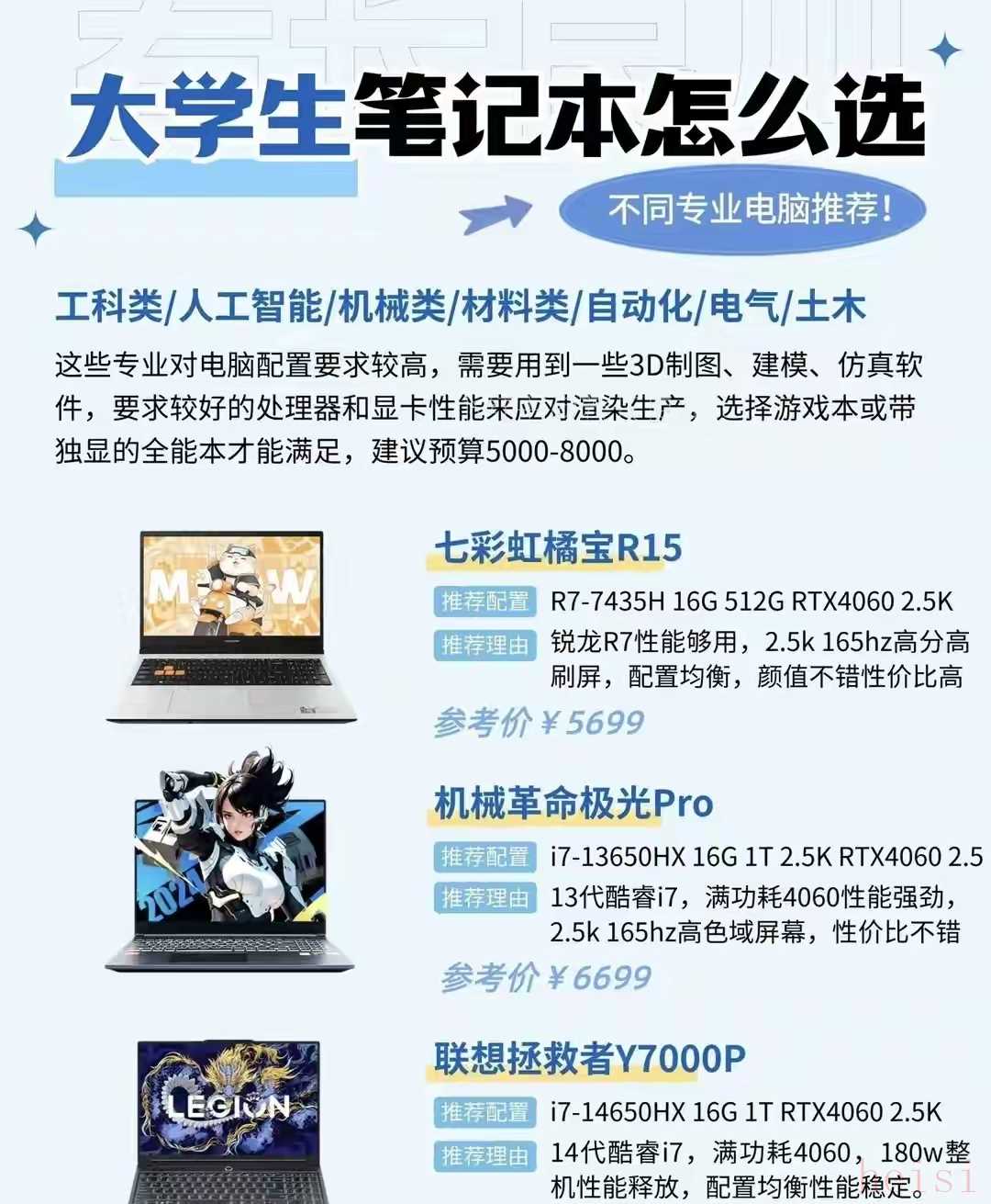 不同专业对电脑的需求差异很大。文科专业如中文、外语等,主要用于文献阅读、论文写作等,对电脑性能要求相对较低,选择轻薄本即可。而理工科专业如计算机、机械等,可能需要运行编程软件、仿真软件等,对性能要求较高,需要选择性能较强的全能本或游戏本。设计艺术类专业如动画、视觉传达等,对电脑的处理器、显卡、屏幕素质等都有较高要求。