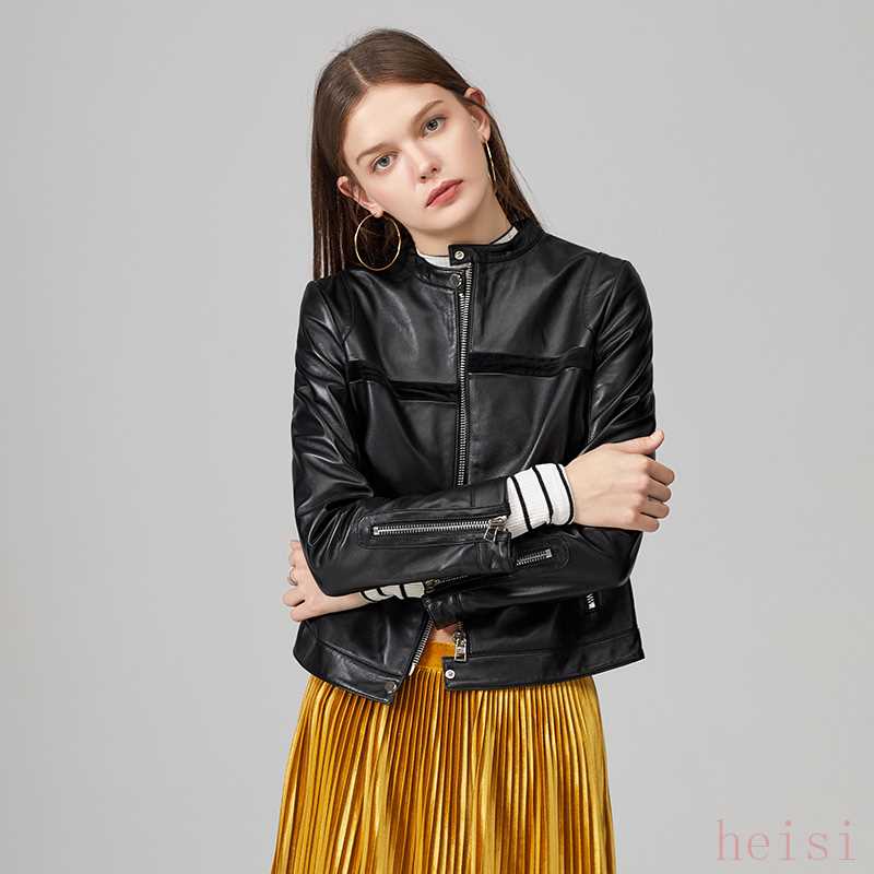 TOP1:咔琦娜2019秋冬新款真皮皮衣整皮绵羊皮机车皮夹克女短款海宁皮衣