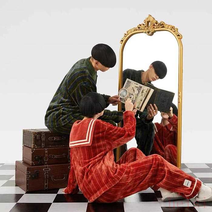 系列产品包括厚款睡衣、家居服、围巾、帽子等产品。法兰绒睡衣模拟兔的保暖方式,面料软滑亲肤,口袋处绣有学院徽章。
